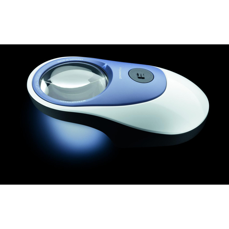Die Eschenbach powerlux ist eine moderne Leuchtlupe, die das Nonplus-ultra in punkto Ergonomie, Ausleuchtung und Bedienungskomfort darstellt. Lernen Sie die Powerlux kennen, die ergonomische Form der LED-Leuchtlupe ist einzigartig, Sie ist der vertrauten Form der Computermaus nachempfunden, die sich millionenfach bewährt hat und für eine entspannte Handhaltung auch bei längerem Gebrauch sorgt. Sie sichert hohen Komfort beim zitterfreien Führen der Linse.
